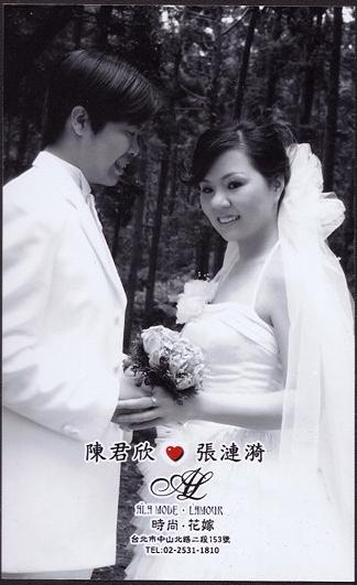 今天到婚紗店竟然看到柏誠的婚紗放大照擺出來,我想,這傢伙怎麼比我還快,沒想到店員說:柏誠明天就要訂婚了!很趕很趕....7月初才照的,所以,先選一張放大應急,還有一張謝卡,其他都還沒選,呵呵...所以我偷偷拿了一張謝卡,我有翻拍到我的相簿裡唷!可以瞧一瞧:p,他皮膚變的超好!我可是有馬上打電話祝福柏誠的~~