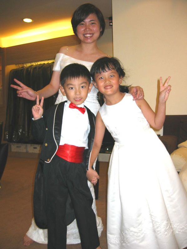 今天安排了小花童試衣服,當然,也包括了伴娘